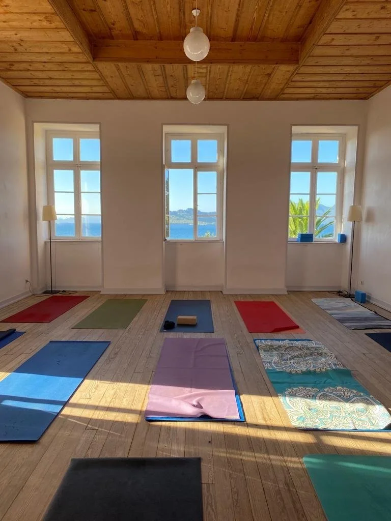 We stay and practice in a 19th-century stone villa tucked away on the quiet side of the Pistachios Island.